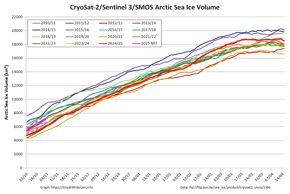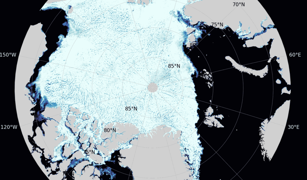 Bear in mind the caveats about the current lack of reliable SMOS data on the Atlantic side of the Arctic, and that Sentinel 3 data is only incorporated from Autumn 2023.