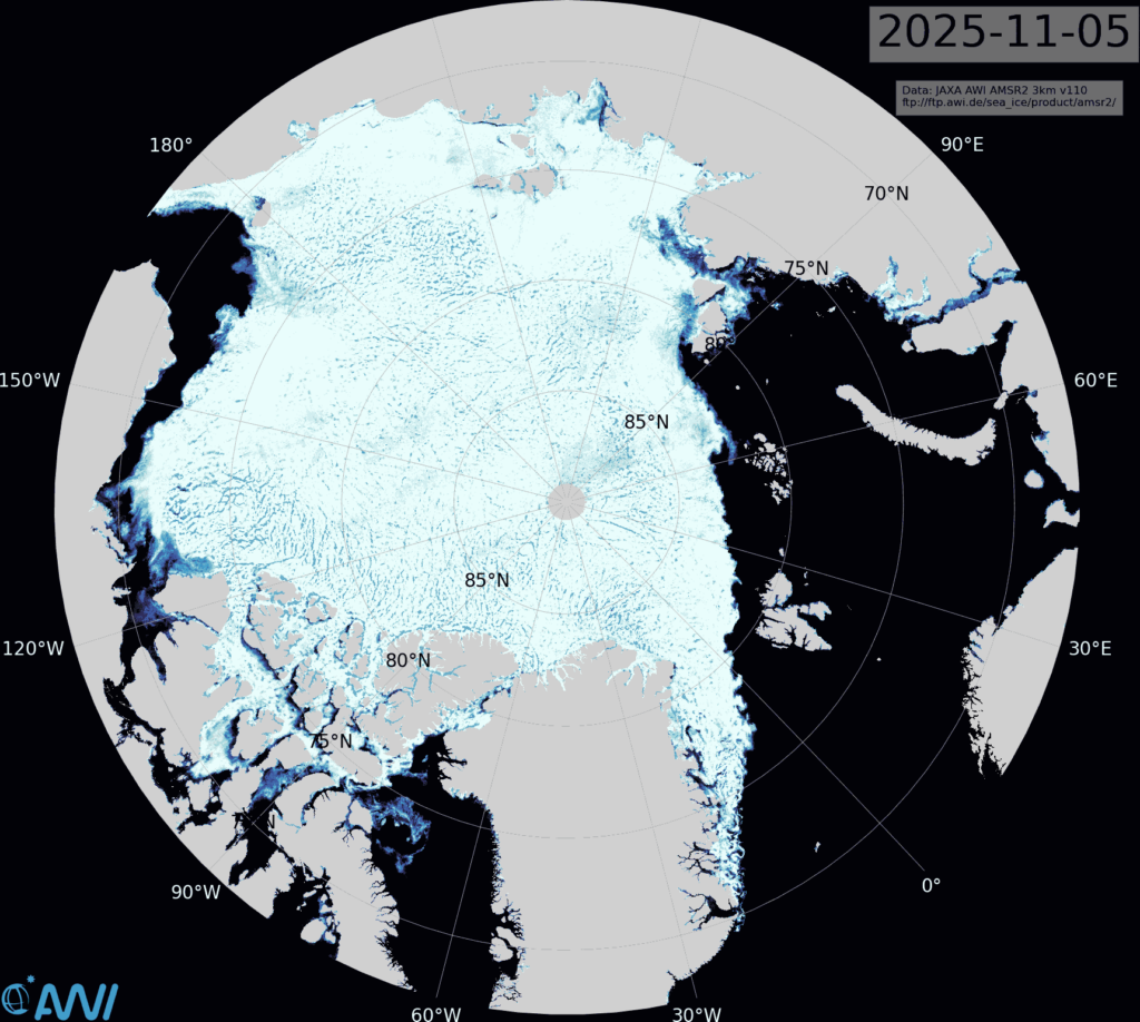 The latest Alfred Wegener Institute sea ice concentration map shows the East Siberian and Laptev Seas almost completely refrozen. However, refreeze of the Kara Sea has barely begun: