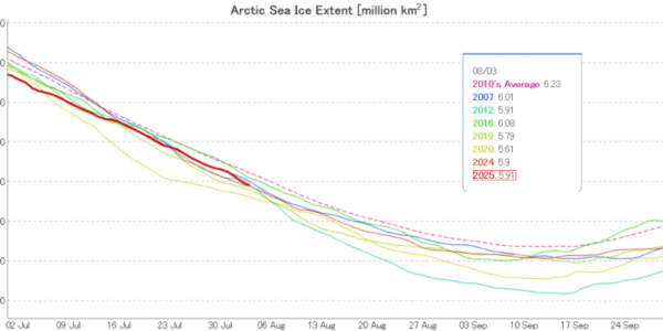 At the beginning of last month JAXA/ViSHOP extent was third lowest for the date in the satellite era.